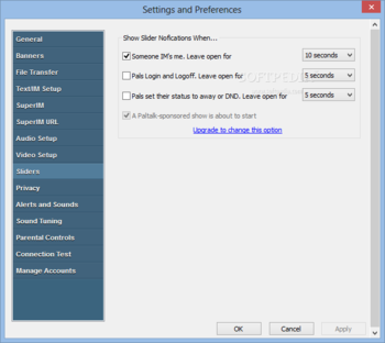 Be everywhere at once! Text chat with your AOL, MSN, Y!, Gchat and Facebook friends right from the Paltalk Pal list. Add audio and video just by sending them a simple SuperIM link.