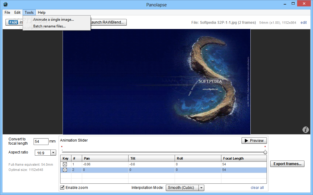 Panolapse comes packed with a smart and powerful feature, so-called RAWBlend. It is designed for helping you blend from one frame to another in order to obtain smooth and natural effects. You only need to specify the target keyframe photos, and the tool is able to interpolate photo settings, such exposure, color, temperature, contrast, and white balance across RAW/JPG images.