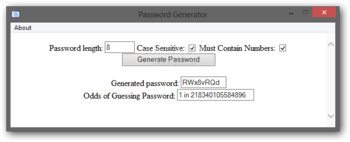 Last but not least, the application is able to calculate the chances of someone guessing the newly created password.