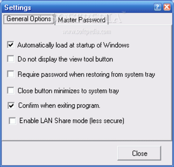 Password Keychain lets you run the tool at Windows startup, provide the master password each time you restore the app from the system tray, change the master password, as well as back up data to a file on your computer.