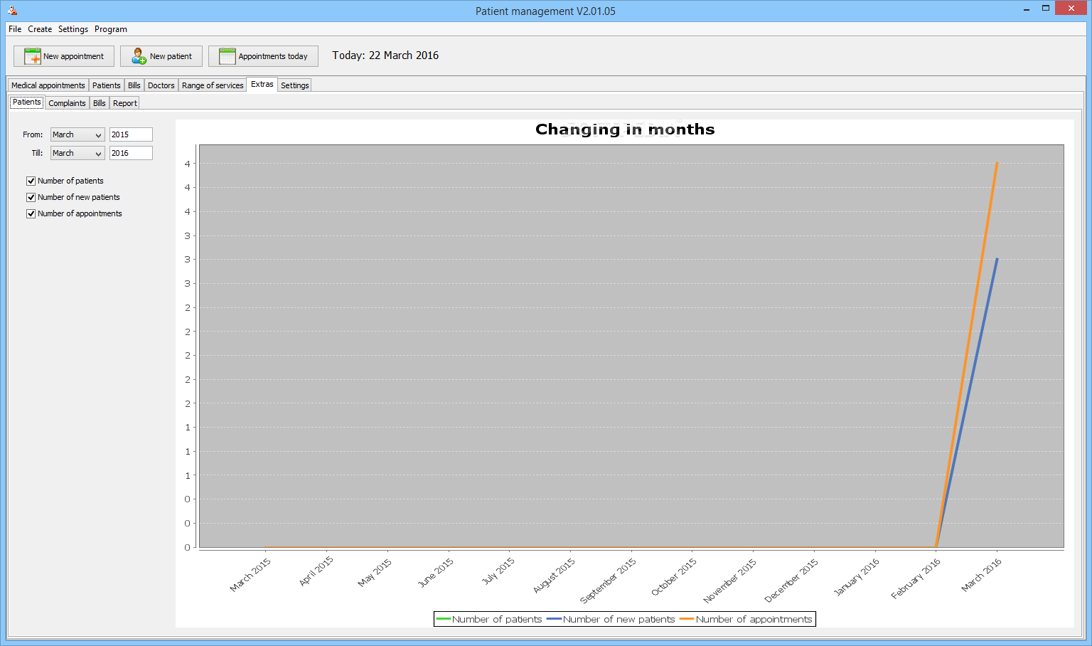 You should know that the program also includes a few useful statistics that can help you get an overview on how your medical facility has been performing in a given period. Even though they are not extremely detailed, you can learn whether the number of appointments and new patients has dropped significantly over the last year and hence, you can take the necessary step to improve these figures.