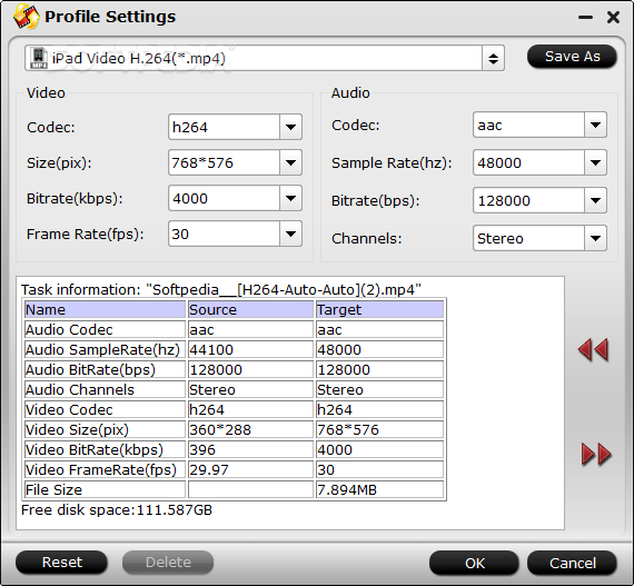 But you can also make audio and video modifications when it comes to the codec, size, bit rate, frame rate, sample frequency rate, channels and others. Settings can be restored to their default values.
