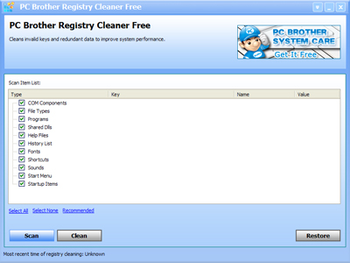 PC Brother Registry Cleaner Free is one of the safest registry repair software. It cleans, repairs and optimizes your system, freeing it from registry errors and fragmented entries. Through advanced error detection technology, PC Brother Registry Cleaner Free automatically identifies missing, corrupt, or invalid items in your Windows registry and dramatically enhances performance and general stability. With PC Brother Registry Cleaner Free, there is no need to get technical, just one mouse click and PC Brother Registry Cleaner Free does the rest.