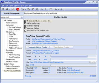 Backup and Synchronize your files and folders using byte-level replication and automated settings, such as real-time continuous file and folder event detection. Through advanced settings (Bandwidth Throttling, Application Priority, TCP connection, FTP, Cross Domain replication, multi-threading and more…), PeerSync will ensure your data is protected at all times.