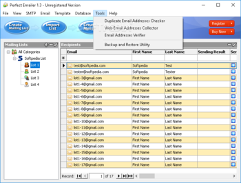Perfect Emailer also has a built-in Email Address Collector module, with this Mail Collector, you can easily extract email addresses from various web pages. and save them to the mailing list.