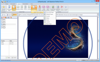 Control layout settings like: borders, number of pages per sheet, background, layers, positioning of individual pages