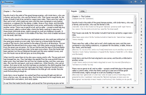 Automatically add IPA (International Phonetic Alphabet) transcription to any English texts, edit the resulting text, copy it to an external program for additional editing or printing. Phonetizer automatically recognizes inflections of English verbs, nouns and adds transcription to whole texts instead of single words using a database of over 45,000 words transcription.