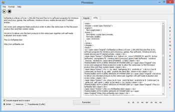 What’s more, you can view the phonetic transcription in a dedicated panel, check the HTML version of the text, as well as edit the current transcription by inserting preset symbols.