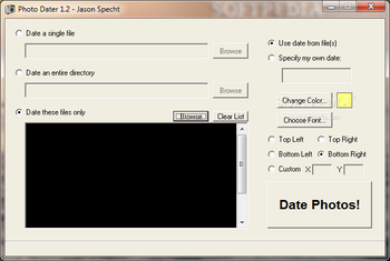 Photo Dater is a simple-to-use application that enables you to display dates on image files.
