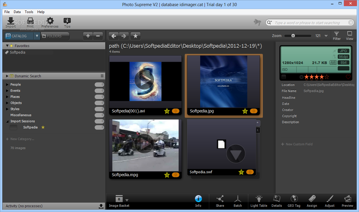 There are multiple categories that the utility comes bundled with, yet you can also edit them or create new ones with just a few clicks. Aside from that, you can view detailed information regarding all imported photographs, including copyright message, supplier ID, date and time, focal length and GPS coordinates.