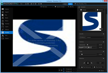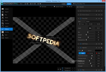 Using the import function, you can add image files with JPG, PNG, BMP, or TIFF format with the help of the locator window. If more advanced options are needed by your project, slide over to the "Key" tab where options like red eye removal, blur and auto-color difference are found. From this tab you are able to manipulate light, alpha level and blur, plus many others to get a perfect image. PhotoKey Pro also adds masks to the photos, with alpha and custom feather values. Moreover, the software application has multiple filters which enhance an image. Common filters for transparency, white balance, brightness, contrast or silhouette are found in this list, among others.
