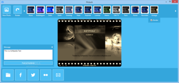 Unfortunately, effects come with preset parameters, with no option whatsoever to adjust intensity, or modify border type. When done, you can either save the picture locally as JPG or PNG, or upload to social networks like Facebook, Twitter, Flickr, or send via email. A message can also be attached to pictures.