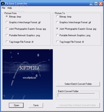 Picture Converter is an easy-to-use tool that gives you the possibility to transform images from one format to another in bulk. It offers support for BMP, GIF, JPG, PNG and TIF when it comes to both input and output files.