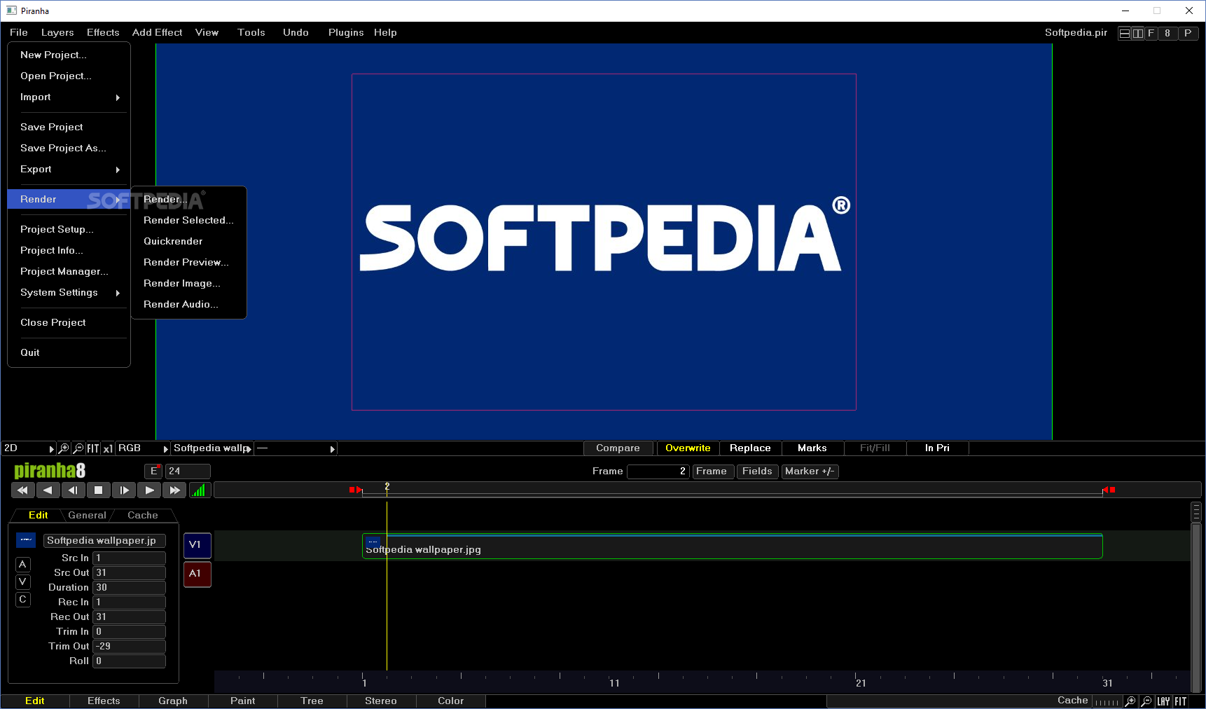 Piranha integrates editing, layer-based compositing, painting, complete color correction and more in a single timeline, and within a single application. No more switching between applications!