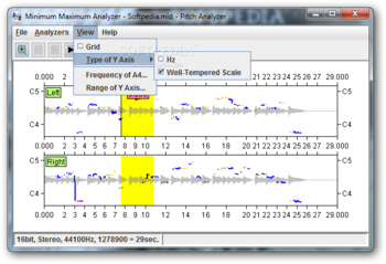 The audio and pitch data are displayed graphically. The application comes with a minimum maximum analyzer and a frequency peaks analysis tool.System requirementsJava