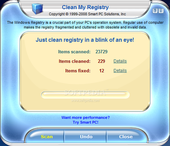 Portable Clean My Registry is a free software by Smart PC Solutions Inc and works on Windows 10, Windows 8.1, Windows 8, Windows 7, Windows XP, Windows 2000, Windows 2003, Windows 2008, Windows Vista, Windows 2012.
