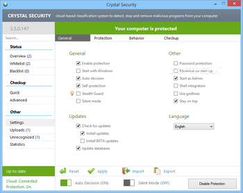 You can download Portable Crystal Security which is 452.7 KB in size and belongs to the software category Antivirus Antispyware. Portable Crystal Security was released on 2017-02-25 and last updated on our database on 2017-04-23 and is currently at version 3.5.