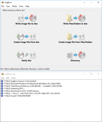 Portable ImgBurn is a free software by LIGHTNING UK and works on Windows 10, Windows 8.1, Windows 8, Windows 7, Windows 2012.