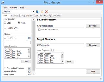 Choosing to work in ‘Advanced’ mode offers you a set of additional preferences, enabling you to define the ‘File Operation’ to be executed: ‘Copy’, ‘Move’, ‘Rename Only’, the last of which comes with additional ‘Options’ referring to the name to be given to the images in question.