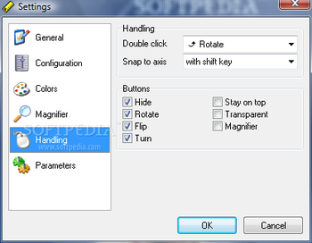In addition, the magnifier can be enabled to be visible, have a particular zoom percentage, along with crosshairs (e.g. open, continuous, small cross), horizontal or vertical position. Plus, you can select what action should be executed when double-clicking on the ruler and what buttons to be shown, as well as how many pixels per inch to use and the preset values.