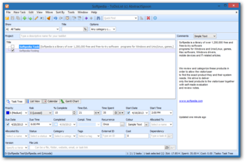 All tasks are organized in a tree where you can branch out and create subtasks. Apart from writing a comment (in simple or rich text format), you can specify the priority level, deadline, completed percentage, elapsed and estimated remaining time, as well as manage categories and tags, among others.