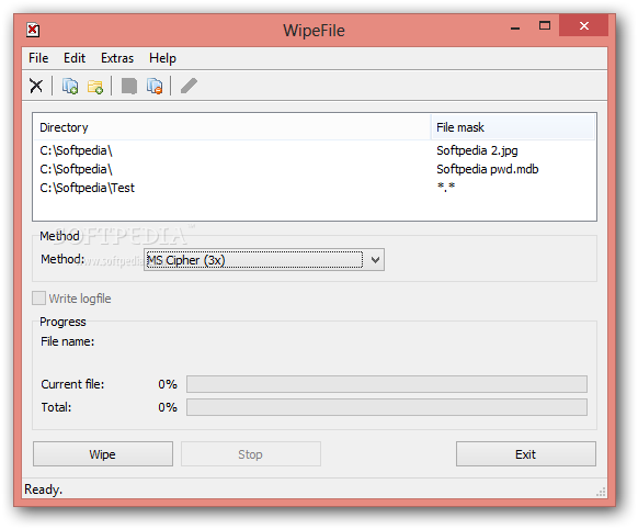 Portable WipeFile is a free software by Werner Rumpeltesz and works on Windows 10, Windows 8.1, Windows 8, Windows 7, Windows 2012.
