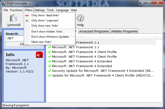 You can download Portable ZSoft Uninstaller which is 1.47 MB in size and belongs to the software category System. Portable ZSoft Uninstaller was released on 2014-06-12 and last updated on our database on 2017-03-31 and is currently at version 2.5.