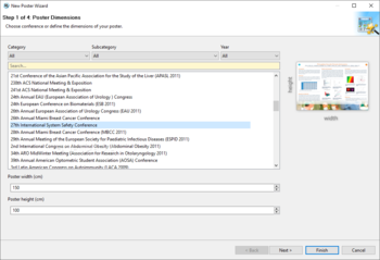 You'll never have to start on a white page. PosterGenius has a dead-simple wizard guiding you through all the basic setup of your poster. In just a few steps, you 're done defining dimensions, authors and affiliations as well as the order and titling of your sections.