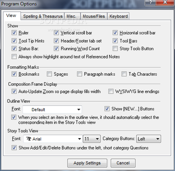 Integrated Story Development Tools means that Power Writer gives you more than top-notch word processing power; it gives you the tools to help you use your own skills as a writer to keep your story in focus and on-track. Story Tools data is always synchronized to the manuscript, so that at any place in your work you can ask yourself insightful questions about how that moment is advancing your story, teaching your characters, or solving expositional issues. Or use them to develop bigger themes, Act and Character arcs or track an unlimited number of Must Accomplish Items.
