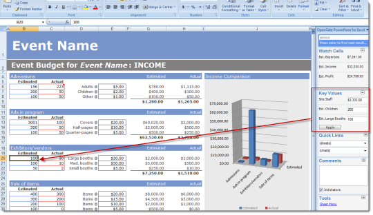 The Microsoft Excel tool that helps you do more with Excel in less time, with more professional results. Use PowerPane to watch the values of cells important to you... no matter what worksheet you are currently in. Change the values of key cells without navigation. Navigate to sheets and charts with only a single click. Search using the quick search box available at any time. In just a few clicks, PowerPane helps you automatically generate a professional, polished Welcome worksheet where users can easily navigate to key sheets in your workbook.