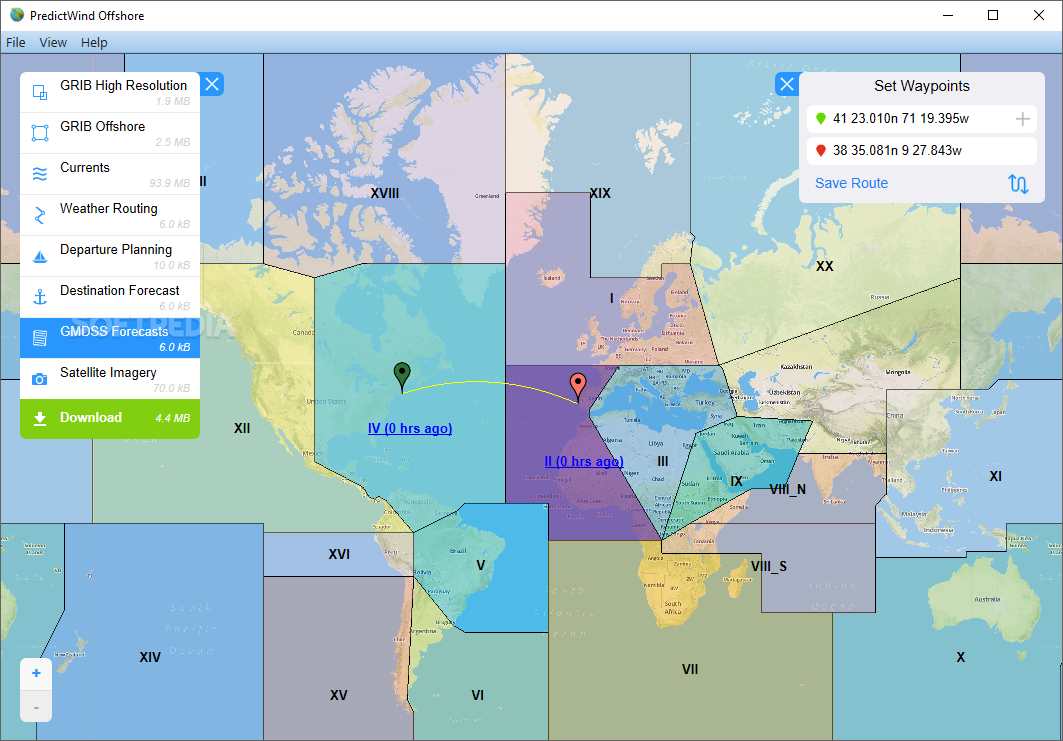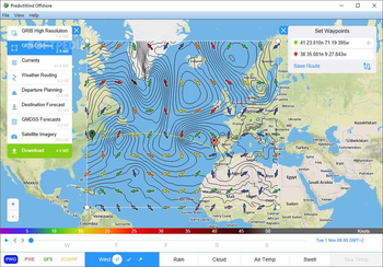 Accessing the app's main features (GRIB High Resolution, GRIB Offshore, Currents, Weather Routing, Departure Planning, Destination Forecast, GMDSS Forecasts and Satellite Imagery) from the aforementioned left-sided panel is also a hassle-free experience but please note that you first need to download sets of information for each section.