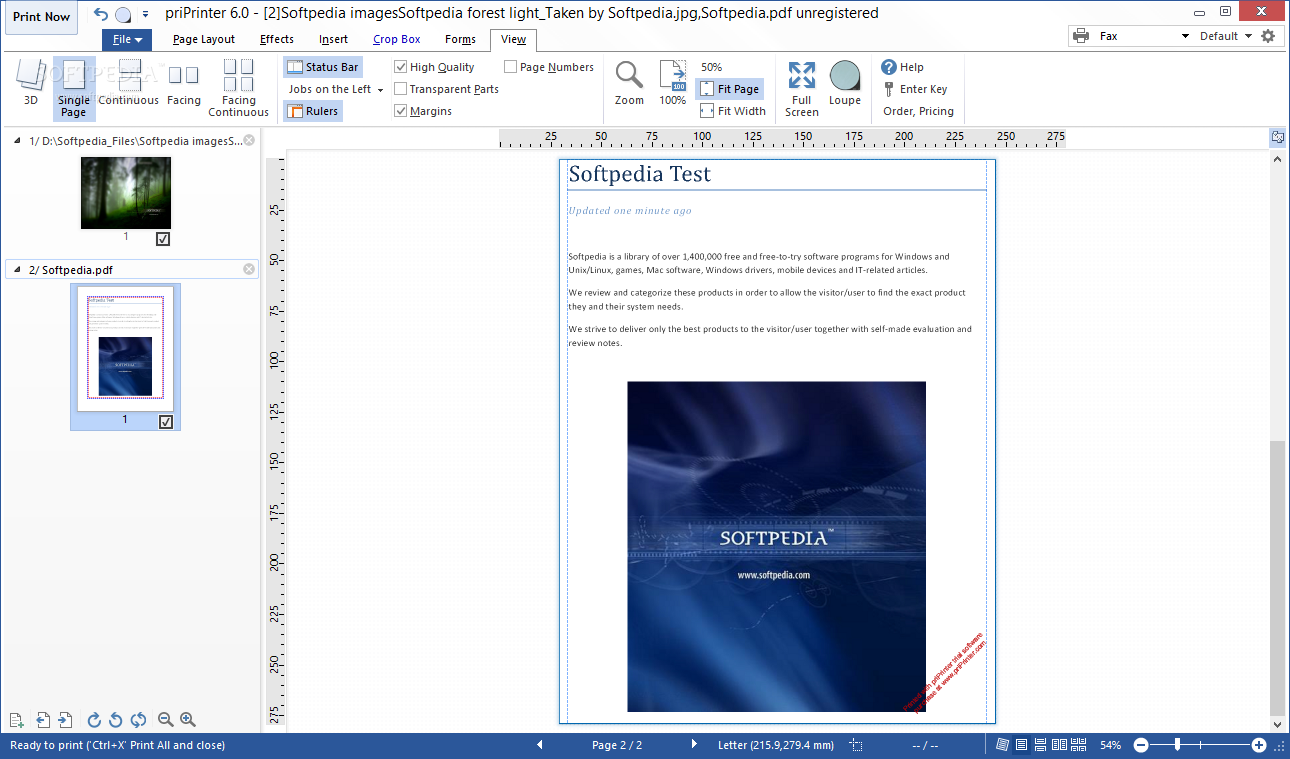 Print pages into image files. JPEG, TIFF, PNG, TGA formats are supported.