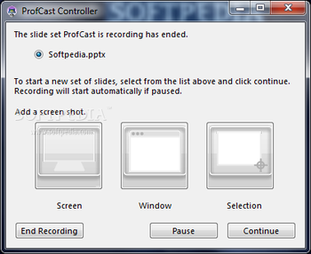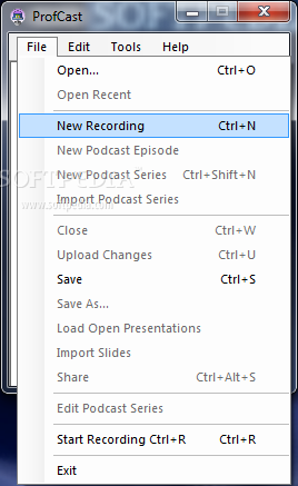 ProfCast offers an integrated workflow that makes creating, recording, and exporting podcast media easy. You will simply need to run the application, start a recording, then lecture!System requirementsMicrosoft .NET Framework 2.0 or later
