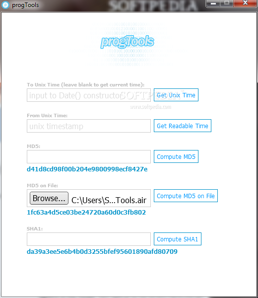 Taking everything into consideration, we can safely state that progTools is a fast method of converting timestamps to and from Unix format, and calculating text string or file checksum. Although it’s pretty lightweight, and intuitive overall, it feels a little rough around the edges, with no save option, or possibility to use SHA1 with files.