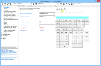 Contains standard calculator functions and many commonly used in the science/engineering field