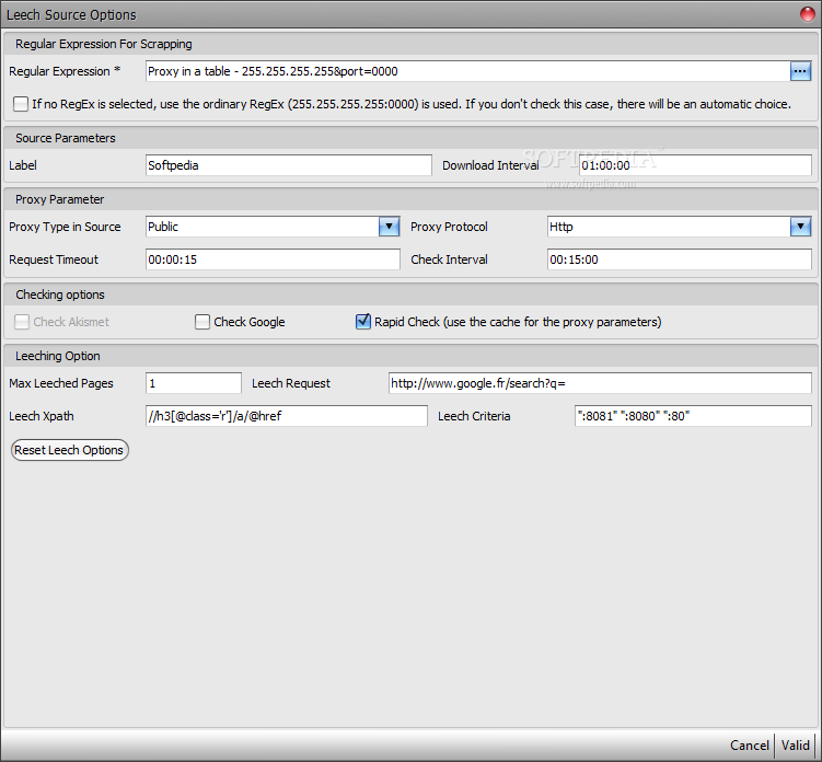 Users can set the application to scrape specific IPÂ addresses, as well as to create a list of blacklist proxies. The harvested lists can be saved locally to a text file.Limitations in the unregistered version10 days trial