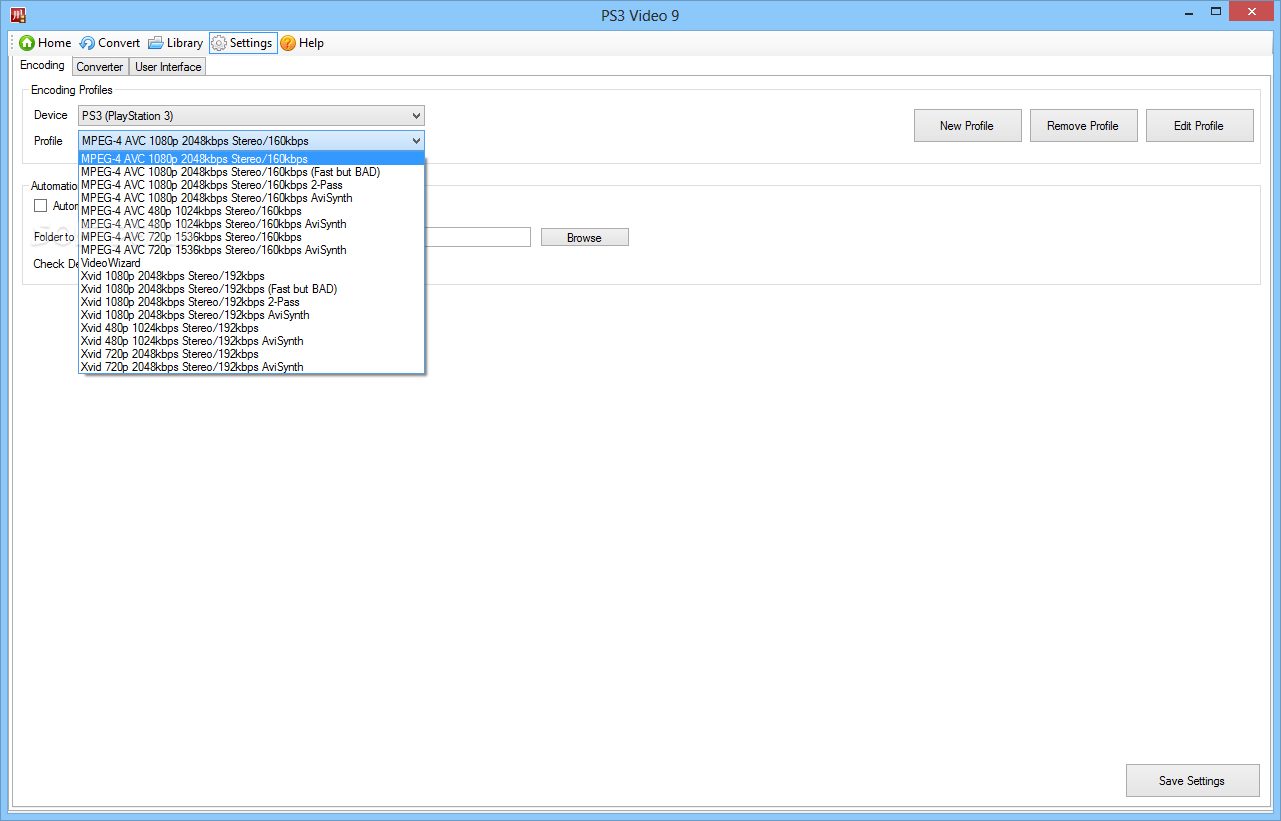 The application has been designed to work with four different output formats, namely PlayStation 3, PlaayStation Portable, PlayStation Portable Go and SonyEricsson W580i, each profile coming with a set of predefined parameters.