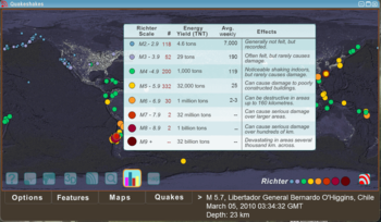 Quake Shakes shows you recent worldwide earthquake activity and displays them on a map with info on location, date, time and size.