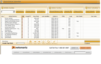 Quick Article Submitter is easy to use article submission software. It provides you the facility of submitting your article to over 400 article directories within no time. Article Submitter is an inexpensive professional submission key for well written articles. Easily Submit and Schedule articles to 400 article directories within no time. Advanced AutoFill options to save your time. Detailed History feature. Suggest directories to be included. Search Directory option. Marking different directories as favorites. Updated complete database for directories. Increase your income by submitting article to different article directories.
