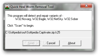 Quick Heal Worm Removal Tool is a lightweight and easy to use application that will help you get rid of several worm viruses in a single pass. The program targets W32.MyDoom, W32.NetSky and W32.Bagle viruses and their variants.