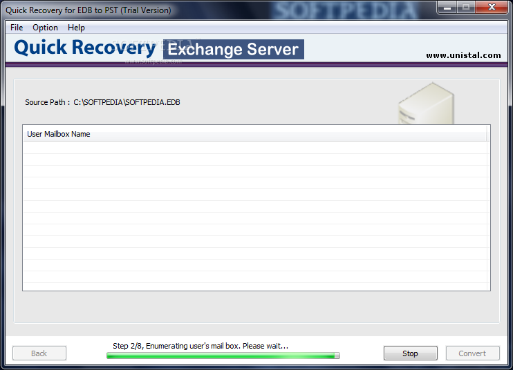 EDB to PST Converter software is best EDB Mailbox recovery tool to recover Mailboxes straight from log files, even if you exchange .edb or .stm files are missing or corrupt. MS Exchange Recovery Tool supports MS Exchange Server version 5.0, 5.5, 2000, 2003 and 2007 for edb recovery and all versions of Microsoft Outlook to save the recovered email items in Outlook .PST file.System requirementsPentium II 400 MHz