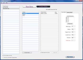 A full-featured application in which the user can generate, administer, archive, upload, export, and score tests. Features of the program include:> Up to 10 different types of questions can now be included within a single quiz file.> Un-graded survey questions can be included within the quiz.> Question types include Multiple Choice with multiple correct answers and Short Answer with multiple responses required.>Users may include multiple pictures with each question.> Essay questions may be included and graded by the test admin.> The new Practice Mode allows test takers to immediately see the correct answer(s).> Test creators can append a test onto another test.> Test questions can be added to the end of the quiz or inserted between to existing questions.> Test scores can be exported to TSV format for importing into spreadsheet programs...> Administrators can print out multiple version of a quiz with corresponding answer sheets for each version.> Users can format a test for printing within QuizMaker Pro> Exported scores now include the date taken.> Program can be set to use a computer voice to read questions and answers.> Test analysis shown with graphical representation.> Individual score data shown from within the scores screen> Whole test Find/Replace> Quiz explanations show within the test window.> A styling toolbar makes adding text styles easy.> Test creator may assign a point value to every question, thus weighting certain questions.> A Category may be set for each question.