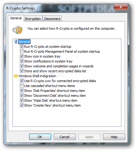 Access to encrypted disk control actions outside the R-Crypto management panel directly from the Windows shell (for example, connect/disconnect).