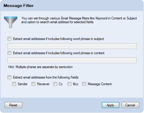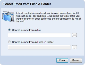 RA Outlook Email Extractor is an e-mail Extractor application specially designed to extract e-mail addresses and contact from Microsoft Outlook Folders, PST and local files & folders. It is a lightweight, extremely powerful and easy to use.The goal of our RA Outlook Email Extractor is to let you easily create and maintain mailing list by extract e-mail addresses from your inbox, sent item, and other different e-mail folder for mass mailing Management. RA Outlook Email Extractor is a great tool for conducting e-mail marketing campaigns.Our RA Email Extractor was designed specially to work on Multi-threading. Based on the PC performance our application will automatically optimize the threading that required without compromise on overall PC Performance.Our RA Outlook -mail Extractor application comes with variety of different additional features which help you to extract what you want.For example:You can extract mailing list found in certain mail folders;You can extract mailing list with specific keyword in subject or body;You can extract mailing list from list of specific domain;With additional e-mail and message filter options.