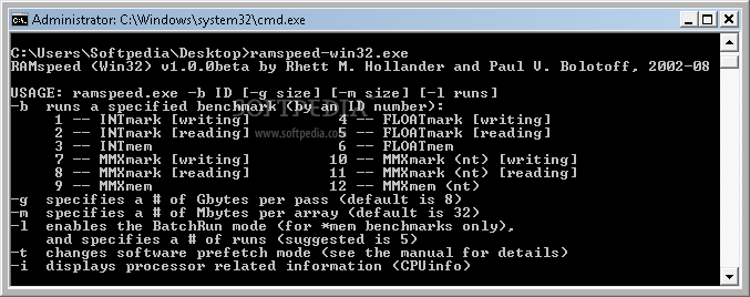 The RAMspeed application was designed to be a command line tool that measures effective bandwidth of both cache and memory subsystems.