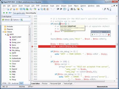 Quick, lightweight and very powerful PHP editor that combines features of a fully-packed PHP IDE with unmatched performance. Rapid PHP is the most complete all-in-one software for coding PHP, HTML, CSS, JavaScript and other web development languages with tools for debugging, validating, reusing, navigating and formatting your code. Whether you are a professional developer or pure enthusiast, with Rapid PHP editor you can get your job done faster, save your time and increase productivity.