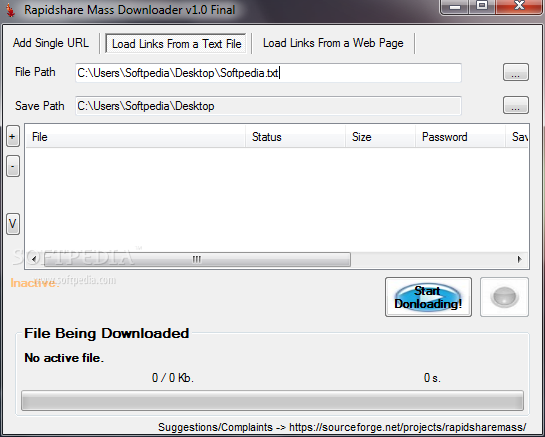 Rapidshare Mass Downloader is a free software by Deran Onay and works on Windows 10, Windows 8.1, Windows 8, Windows 7, Windows 2012.
