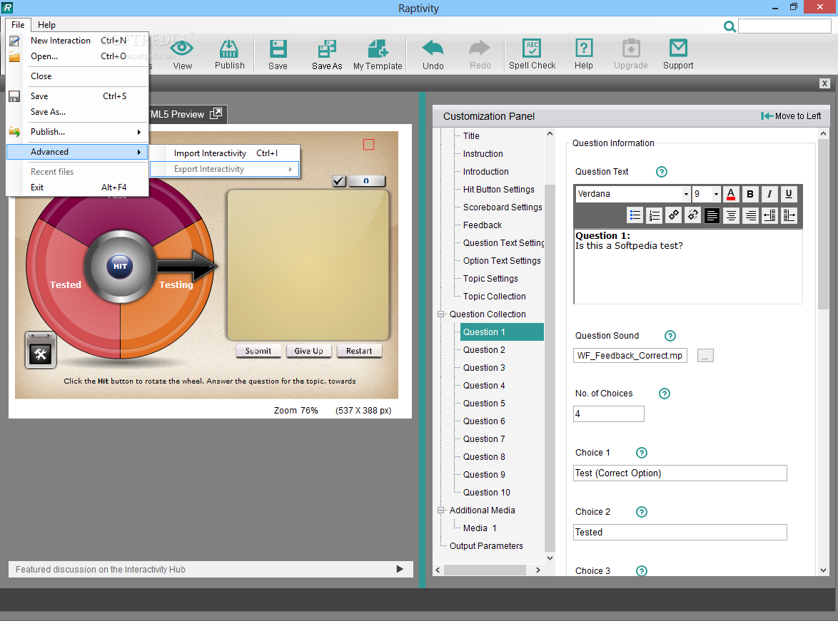 Raptivity Suite is a comprehensive and reliable software solution aimed at teachers who wish to create interactive lessons and encourage students to take part in all courses, by allowing them to have fun while learning.