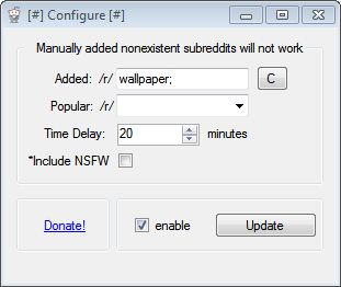 Reddit Waller is an application to change desktop wallpapers. Using a list of subreddits that you choose, this app will download and set the image as a background.