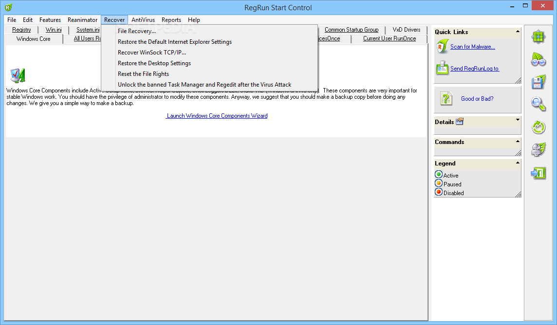 You can download RegRun Security Suite Gold which is 26.08 MB in size and belongs to the software category System Tweak. RegRun Security Suite Gold was released on 2017-03-16 and last updated on our database on 2017-04-24 and is currently at version 8.7.